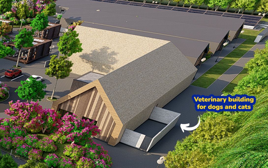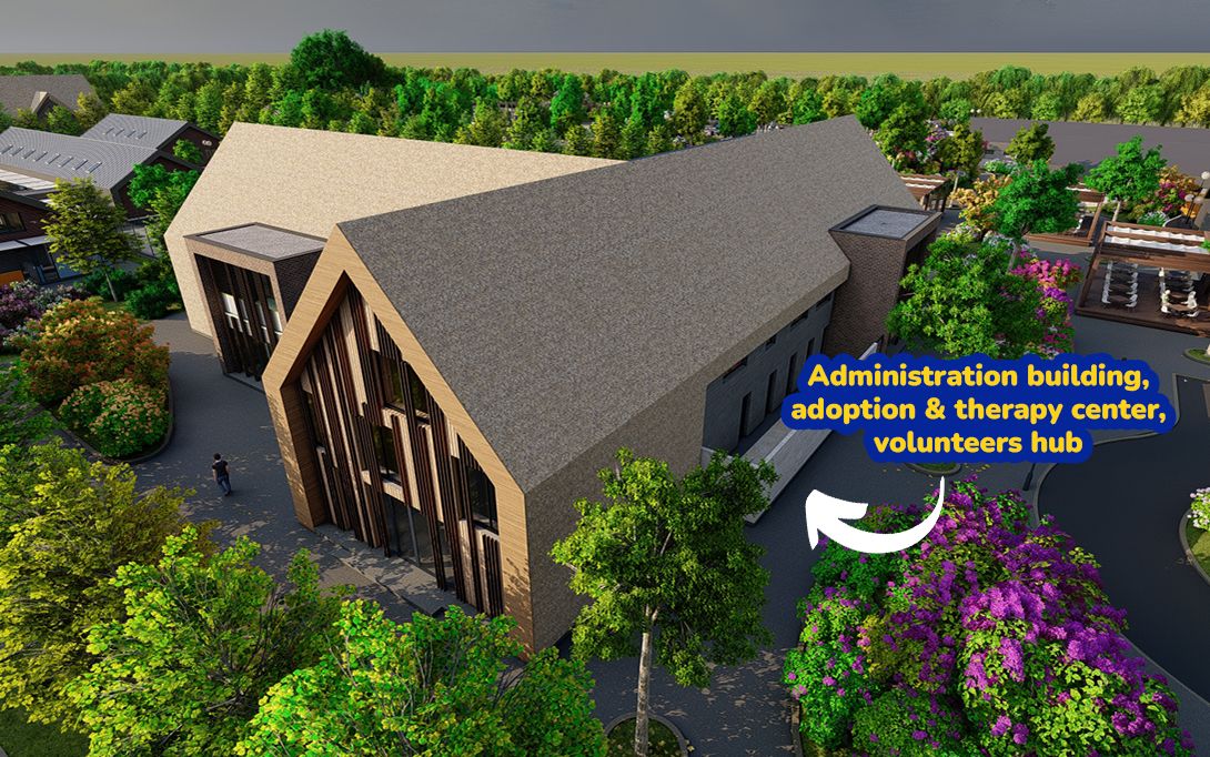 Clădire administrativă, centru adopții și terapie, zonă dedicată voluntarilor